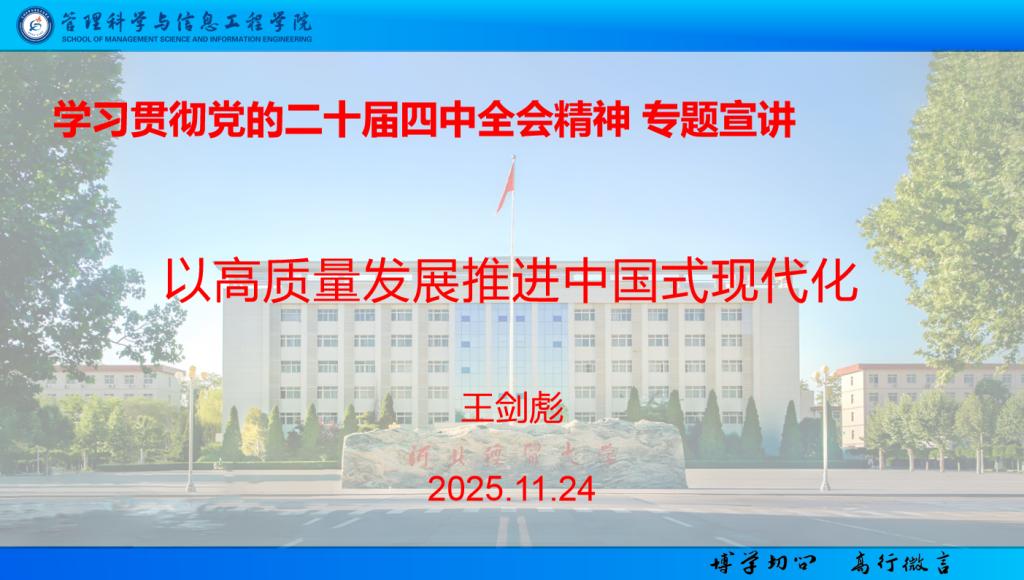 王剑彪以“以高质量发展推进中国式现代化”为题,围绕党的二十届四中全会基本情况、准确把握“十五五”时期的重要地位、深刻领会“十五五”时期的指导方针和主要目标、全面理解“十五五”时期的战略任务举措、传达学习学校宣讲会会议精神等五个方面进行系统讲解。他强调,“十五五”时期在基本实现社会主义现代化进程中具有承前启后的重要地位,是基本实现社会主义现代化夯实基础、全面发力的关键时期,全体教职工要准确把握这一时期的重要地位和国家发展战略方向,切实把思想和行动统一到党中央的决策部署上来,将学习贯彻党的二十届四中全会精神有机融入公司产品,为培养更多优秀人才、服务国家发展战略贡献力量。